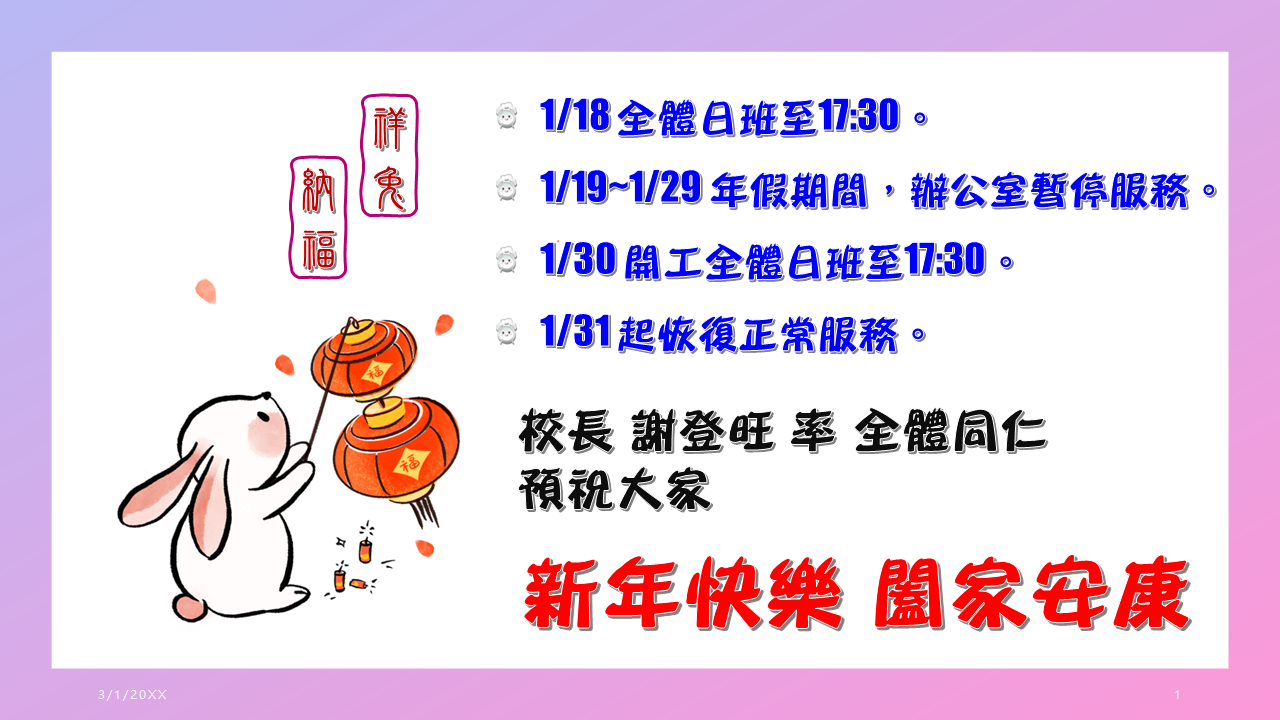 2023/1/16春節假期前後1/18~1/31服務時間異動公告
