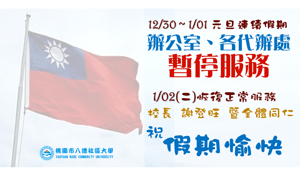 2023/12/2712/30~1/01元旦連續假期暫停服務公告