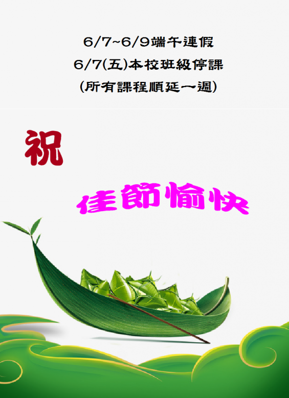 2019/6/6端午連假上課班級延課一週