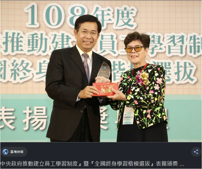 恭喜本校 龍潭區-劉菊英主任榮獲 ⌜全國終身學習楷模獎⌟,值得大家學習。