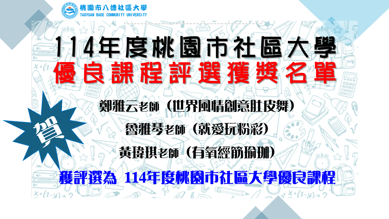 114年度桃園市社區大學優良課程評選獲獎名單(八德社大)