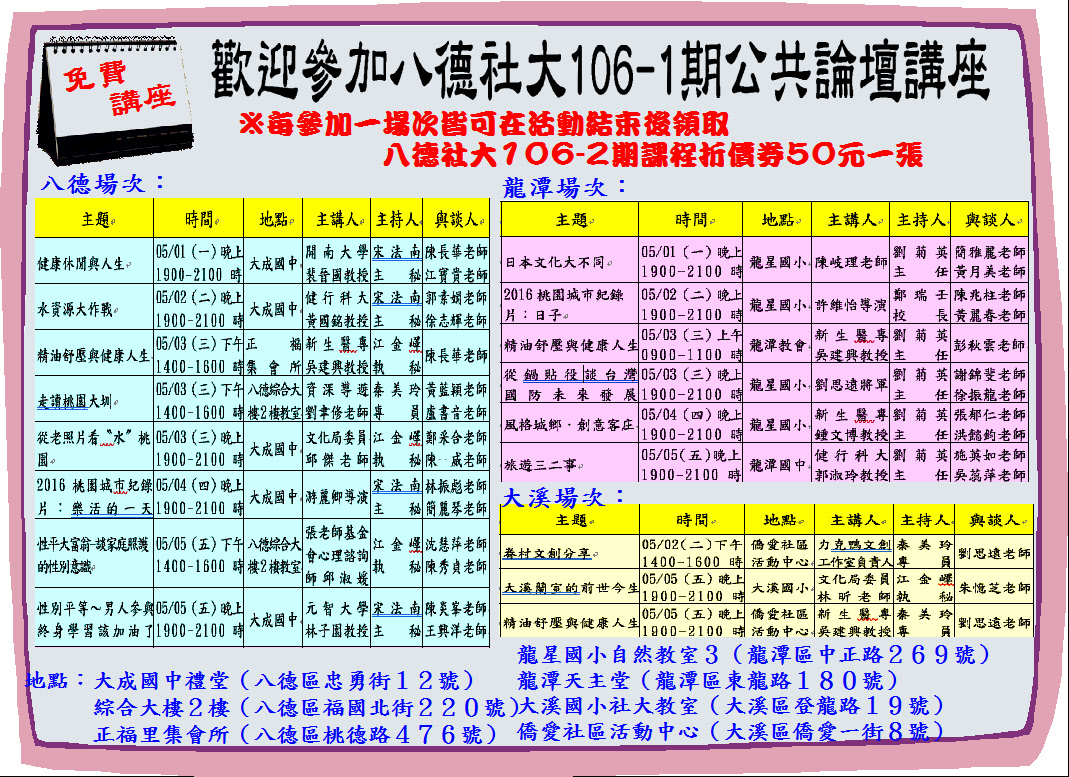 2017/4/26八德社大106年春季班公共論譠場次公告-增訂版